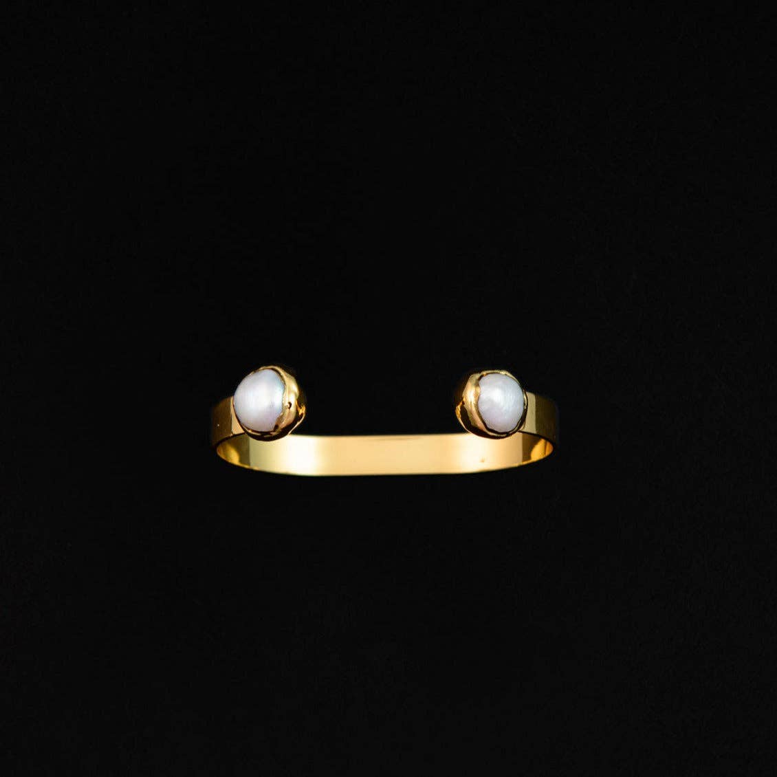 Freshwater Baroque Pearls are the star of the show in this cuff Made from Gold Plated stainless steel, this cuff will surely make a statement.