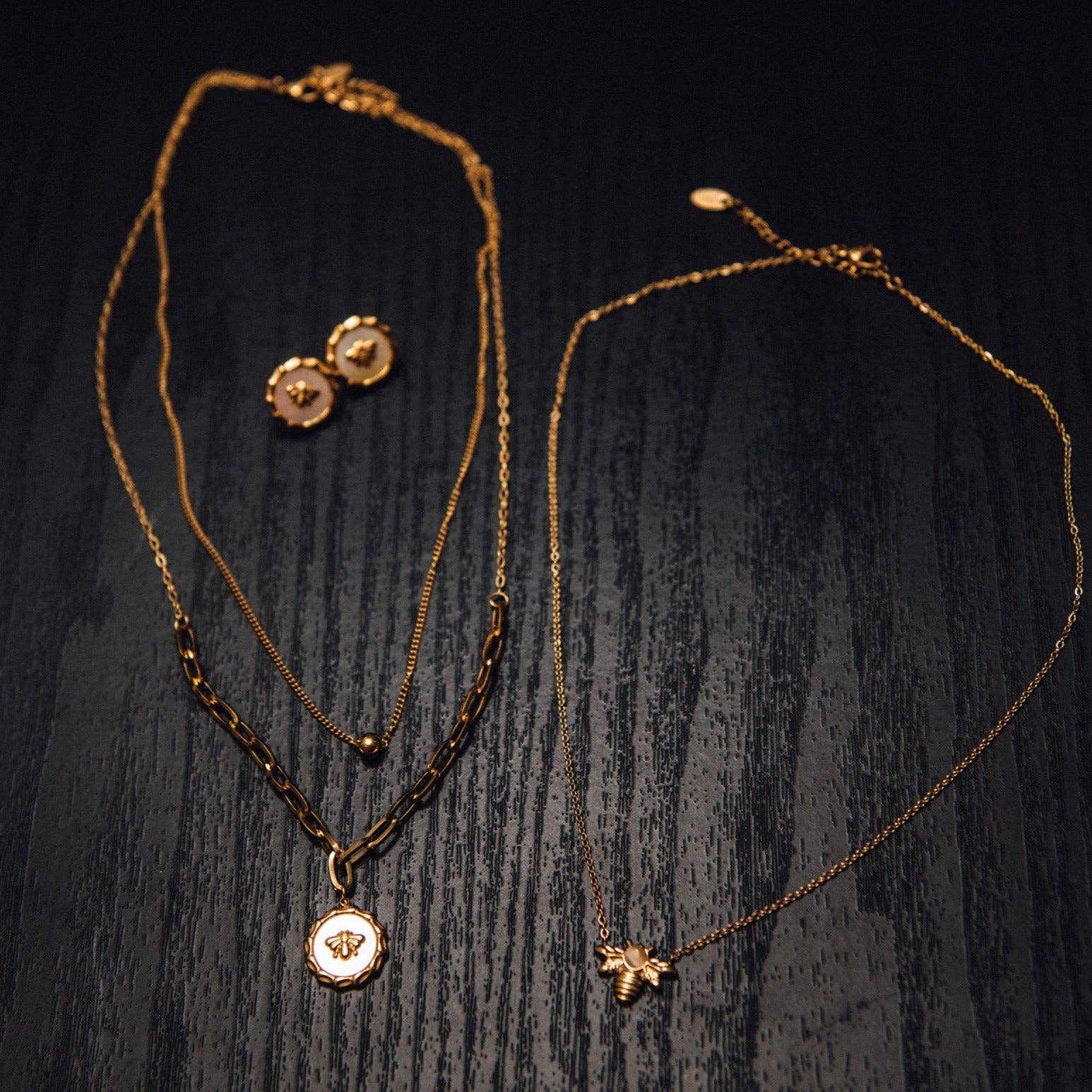 This necklace will have everyone buzzing. Made from gold plated stainless steel with a bumble bee detail, this necklace is a spring must have.