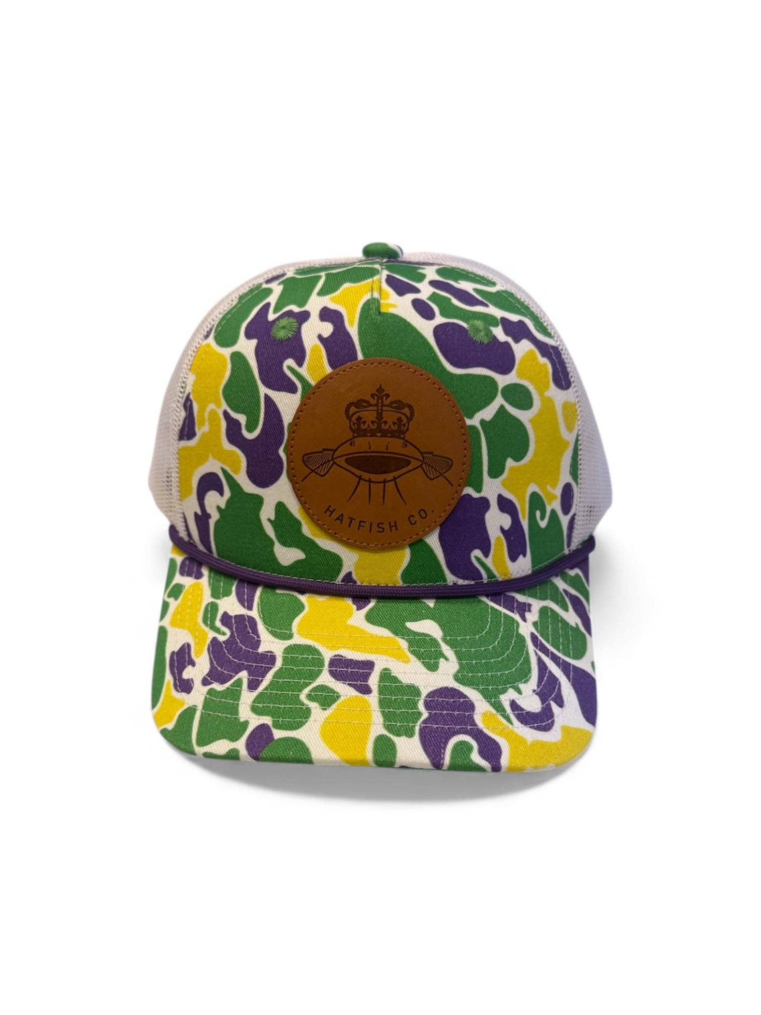 Camo is the new favorite! And no better style than the Mardi Gras Camo with the Hatfish leather patch! You will standout in the crowd with this stylish hat!