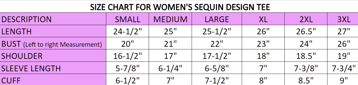 Dusty Rose Magnolia | Women's Sequin Design Tee (Dusty Rose) *Size Chart available for size reference in the images* Material: 93% Cotton- 7% Spandex Features: Sequin Embroidery on front and sleeves.