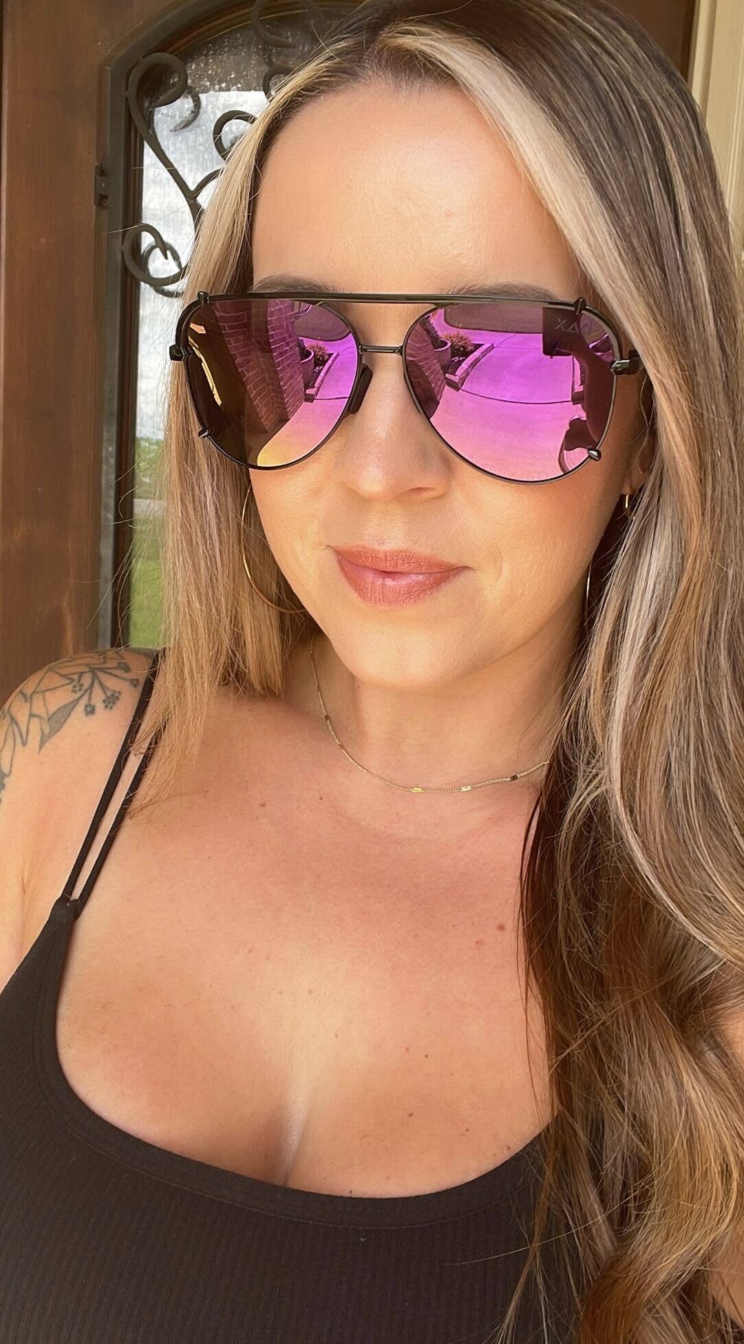 Key Features: - Hair Friendly - Polarized - Iconic Aviators - Specs - Frame Size: Medium-Large - Frame Material: Metal Alloy - UV Protection: UV400 - Polarized: Yes - TAC Polarized Lenses - -Frame Width: 143mm - Lens Height: 52mm - Lens Width: 57mm - Bridge: 17mm - Arm Length: 135mm What's Included: - 1 pair of stunning DAX Eyewear Sunglasses - DAX Eyewear box - Storage pouch - Cleaning wipe Gold Frame with Mirrored Ocean Blue Lens - Shay in Brown - Gold frame with Brown Ombre Lens - Shay in Cheetah - Gold Cheetah Frame with Black Ombre Lens - Shay in Gold - Gold Frame with Mirrored Gold Lens - Shay in Hot Pink - Gold Frame with Mirrored Hot Pink Lens - Shay in Jet Black - Black Frame with Jet Black Lens - Shay in Purple - Black Frame with Purple Lens - Shay in Smokeshow - Black Frame with Smokeshow Gradient Lens