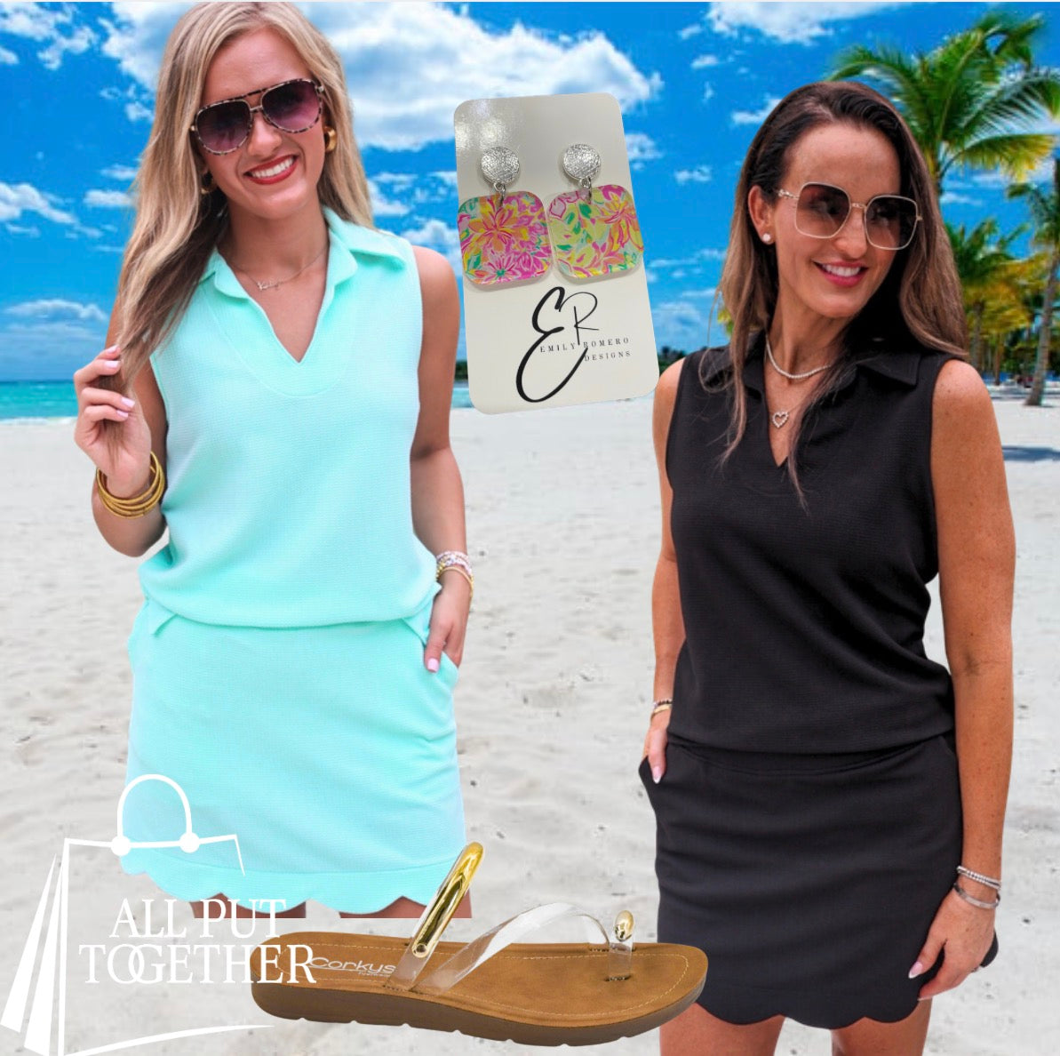 Order our fun and functional "Make It Count" set in textured fabric. With a scalloped hemline and stretchy fit, this set features a unique collar and skort design for a stylish twist on traditional activewear. Don't miss out on this limited edition set!